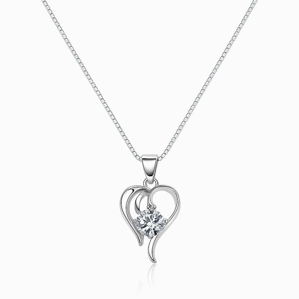A graceful heart-shaped pendant in 925 sterling silver, featuring a sparkling solitaire at the center. Elegant, timeless, and full of love.