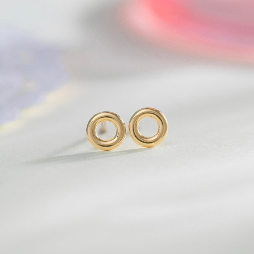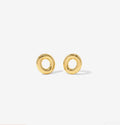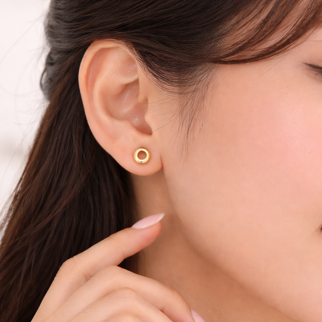 Crafted in 18 Karat pure gold, the KIRA Orbit Gold Studs feature a sleek open-circle design that symbolises balance, eternity, and effortless elegance. The smooth, high-polish finish reflects light beautifully, making these studs a subtle yet striking addition to your everyday jewellery collection.